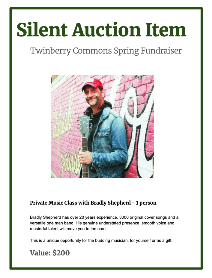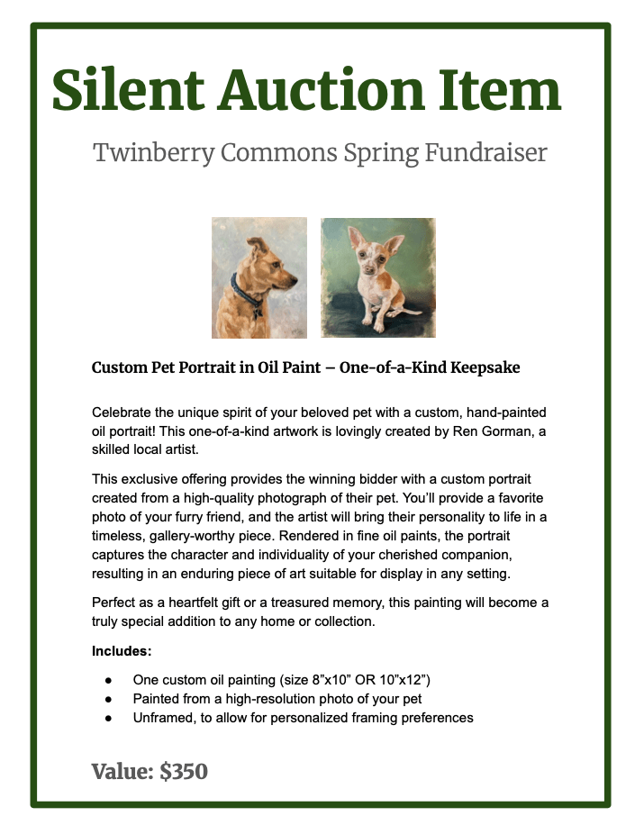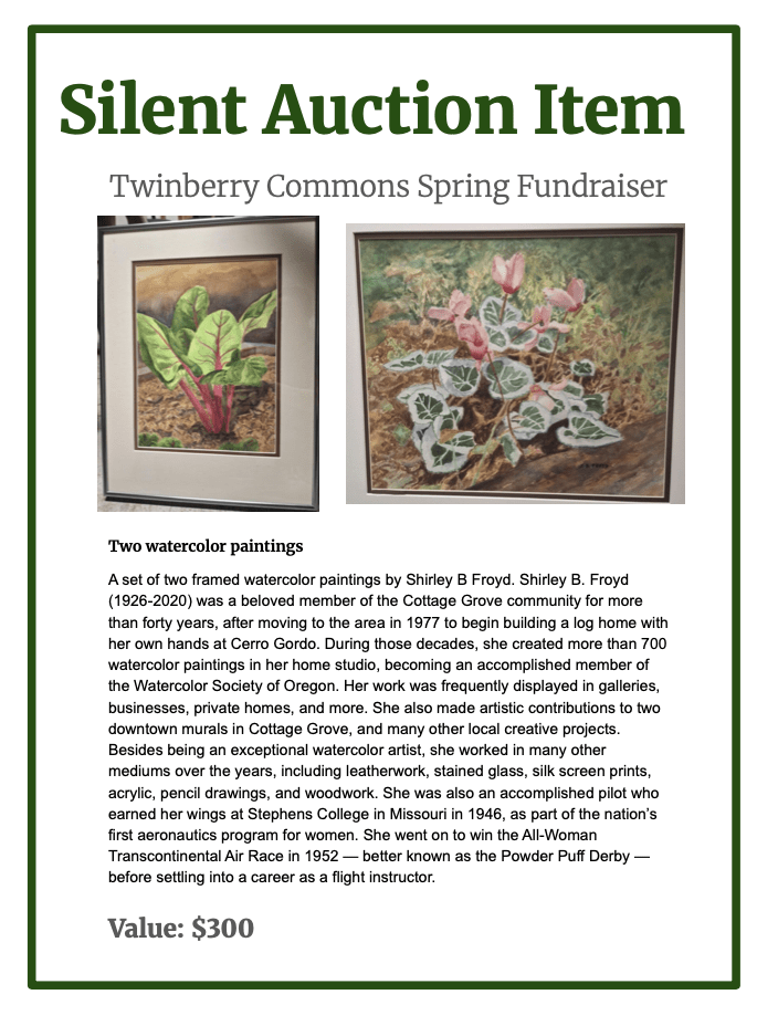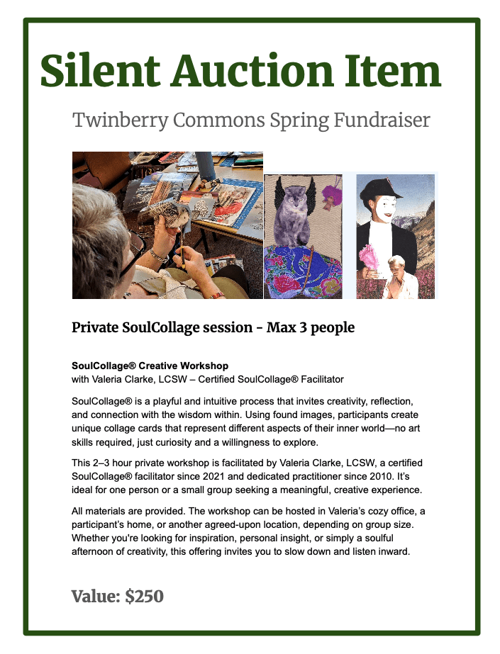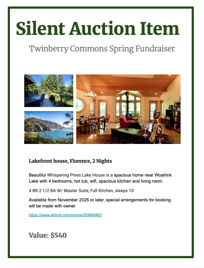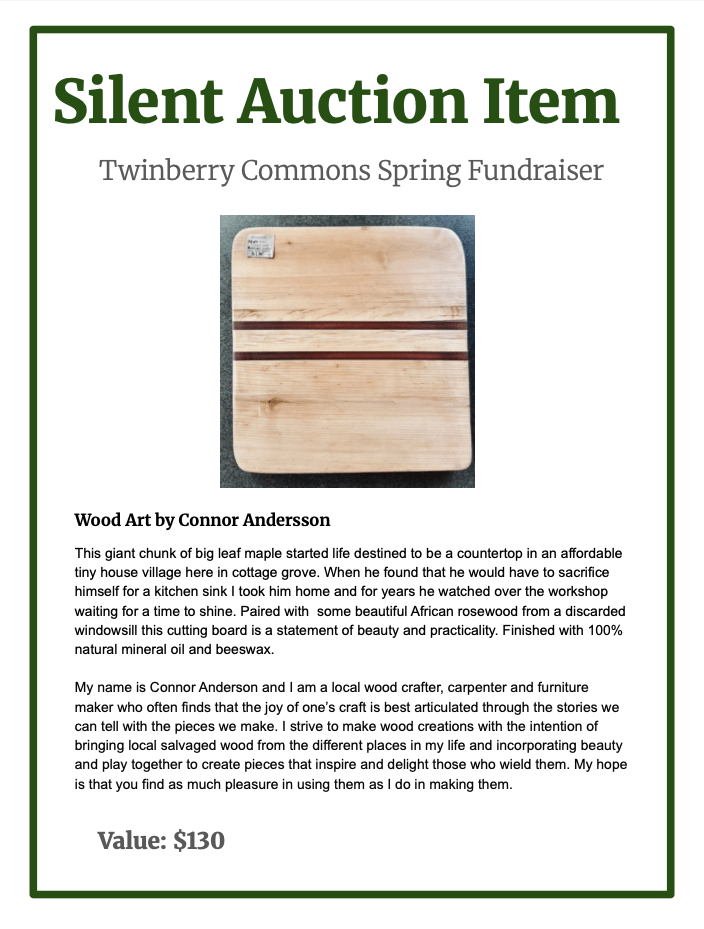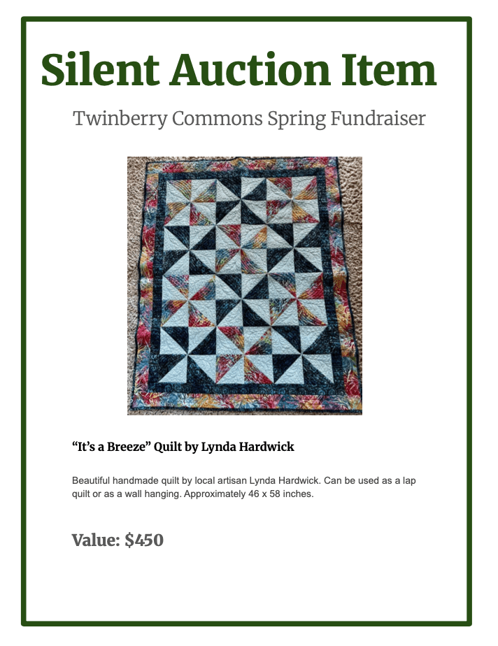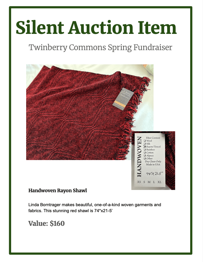 Very special and unique artisan items, experiences and gifts have been donated for the Fundraiser Dinner Silent Auction on April 26th at 5:30-8:30 PM.