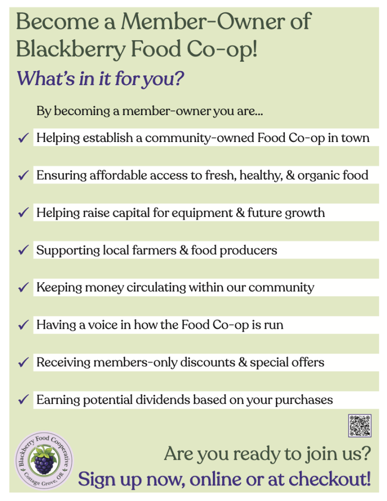 The Food Co-op is no longer operating as Coast Fork Farm Stand — they are now proudly community-owned and moving forward running the store 100% as Blackberry Food Co-op ![]()